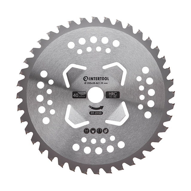 Ніж для мотокоси/тримера з твердосплавними напайками ø255х25.4х1.35 мм 40T, HRC 82-86, 4 підрізні лопаті