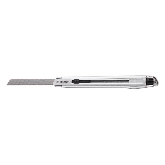 Ніж канцелярський посиленої конструкції з 9 мм сегментним лезом застосовується на будівництвах, складах, а також в домашніх та офісних роботах. Невелике лезо легко дістає до важкодоступних місць та робить точні надрізи. Без особливих зусиль впорається з монтажною піною, шпалерами, скотчем, плівкою, папером тощо.