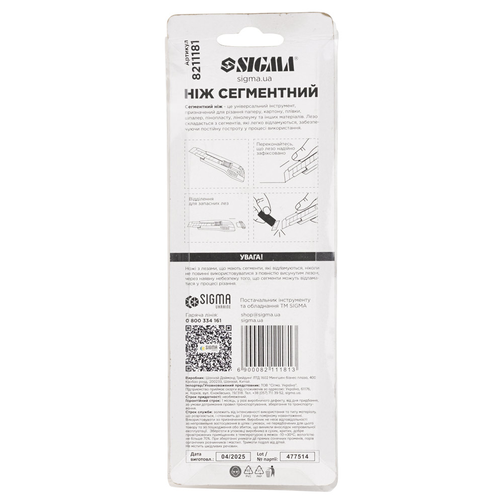 Нож сегментный лезвие 18мм корпус пластиковый автоматический замок SIGMA (8211181)