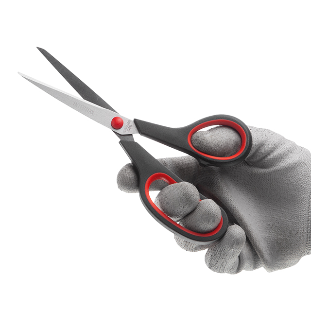 Ергономічні ручки з прогумованими вставками забезпечують зручне використання ножиць. Вони запобігають дискомфорту та втомі, полегшуючи різання незалежно від матеріалу. Не важливо, чи ви ріжете легкі стрічки, середні пластикові або міцні коробки - ви впораєтеся із завданням з максимальним комфортом.