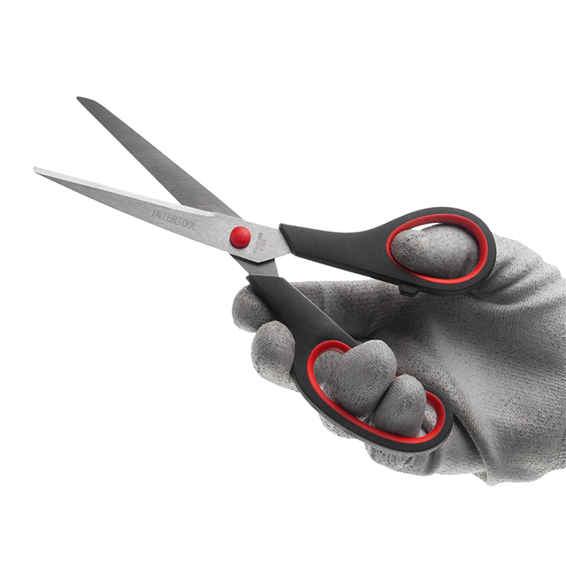 Ергономічні ручки з прогумованими вставками забезпечують зручне використання ножиць. Вони запобігають дискомфорту та втомі, полегшуючи різання незалежно від матеріалу. Не важливо, чи ви ріжете легкі стрічки, середні пластикові або міцні коробки - ви впораєтеся із завданням з максимальним комфортом.