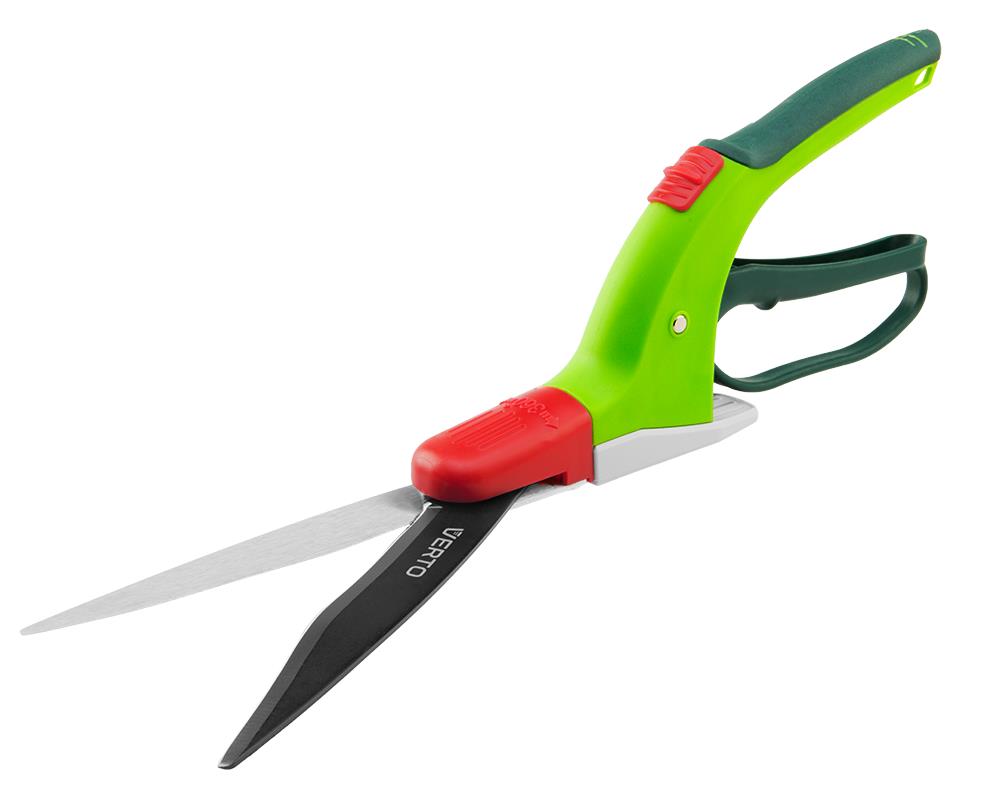 Ножиці до трави багатопозиційні VERTO (арт. 15G302) довжиною 340 мм. Леза довжиною 130 мм вкриті тефлоновим покриттям, яке забезпечує захист від корозії. Можливість обертання голівки у діапазоні 360° значно підвищує ефективність роботи. Ергономічні ручки, вкриті протиковзним матеріалом, і захист для пальців забезпечують зручність і безпеку під час використання.