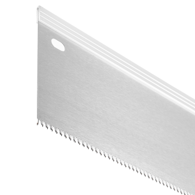 Полотно ножівки виготовлене з високоякісної вуглецевої сталі, твердістю 55 HRC. Тристороннє заточування зубів з кроком 12x1" забезпечує швидкий розріз. Довжина робочої поверхні — 350 мм. Посилений обушок у поєднанні з потовщеним полотном захищають різальну кромку від деформацій та дозволяють виконувати точне розпилювання.
