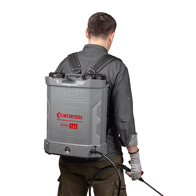 Акумуляторний оприскувач використовується у садах, на городах, дачах і в сільському господарстві. Завдяки баку на 16 літрів забезпечує зручне та ефективне зрошення з додаванням добрив і засобів від шкідників.