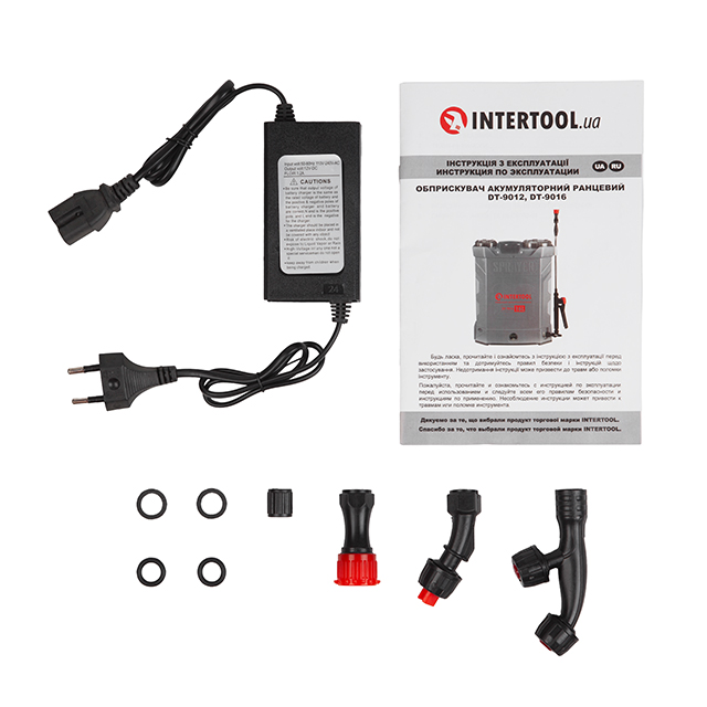 Наявність акумулятора дозволяє забути про незручну необхідність качати помпу вручну. Ви можете без зусиль поливати рослини і легко пересуватися по території, просто надягнувши на плечі зрошувач, як ранець. Два регульовані ремені дозволяють підібрати оптимальну довжину під ваші параметри. Телескопічна розпилювальна штанга для доступу у важкодоступні місця. Акумулятор заряджається від зарядного пристрою, який іде в комплекті.