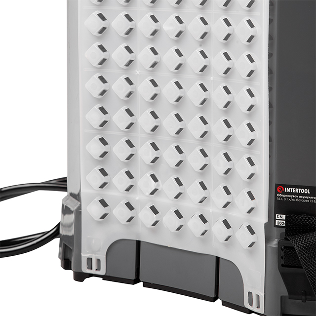 Акумуляторний розпилювач високого тиску із 16-літровим баком забезпечує ефективне розпилення з подачею 3,1 літрів на хвилину. Акумулятора, ємністю 8 Аг, вистачає до 3‑х годин безперервної роботи. Завдяки регульованому потоку води і змінним насадкам, можна точно налаштувати інтенсивність і напрям поливу, забезпечуючи оптимальний догляд за кожною рослиною.