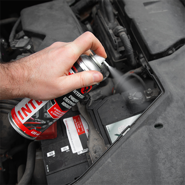 Очищувач застосовується для догляду та технічного обслуговування всіх видів електричних контактів, штекерних з'єднань, клем, систем запалювання, перемикачів, контактів акумулятора тощо. Рекомендований для очищення та знежирення електроконтактів у автомобілях, мотоциклах, промислових верстатах, сільськогосподарській, будівельній та спеціальній техніці.