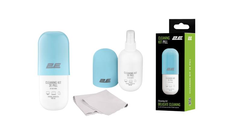 Очисний набір 2E PILL для оргтехніки (рідина 140мл + серветка 20см), біло-блакитний