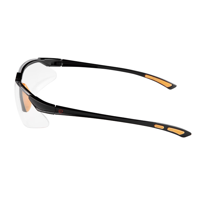 Окуляри захисні, прозорі, лінзи полікарбонат, заушники чорні нейлонові, гумова накладка на ніс, захист від удару