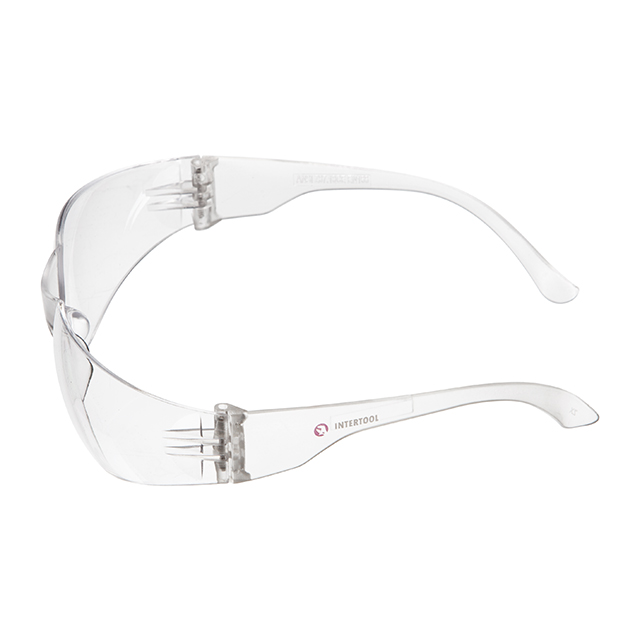Окуляри виготовлені з міцного полікарбонату та захищають очі від механічних пошкоджень, що актуально під час виконання будівельних, монтажних робіт з різним інструментом, оскільки лінзи витримують удари дрібних твердих частинок. Також захищають від бризок різних рідин, крапель, пилу.