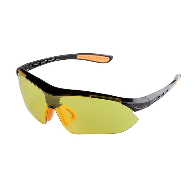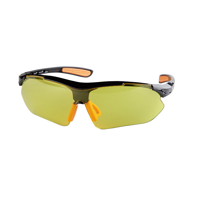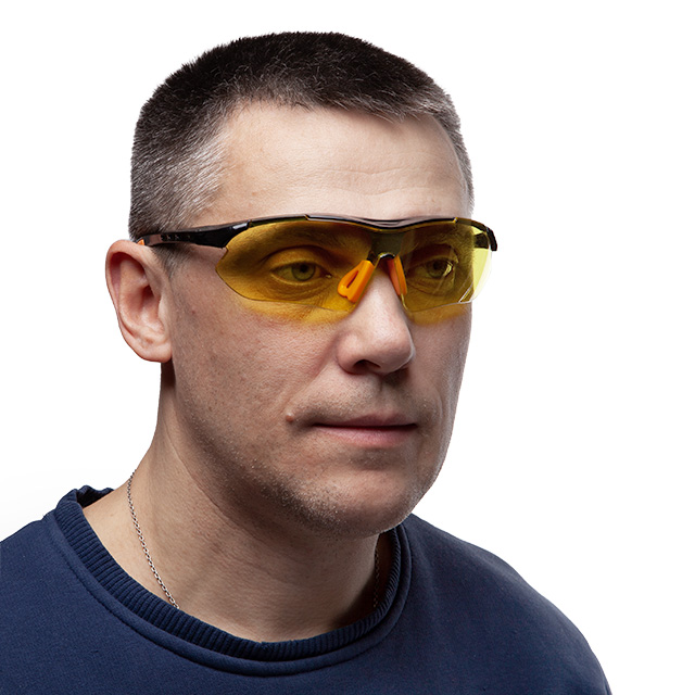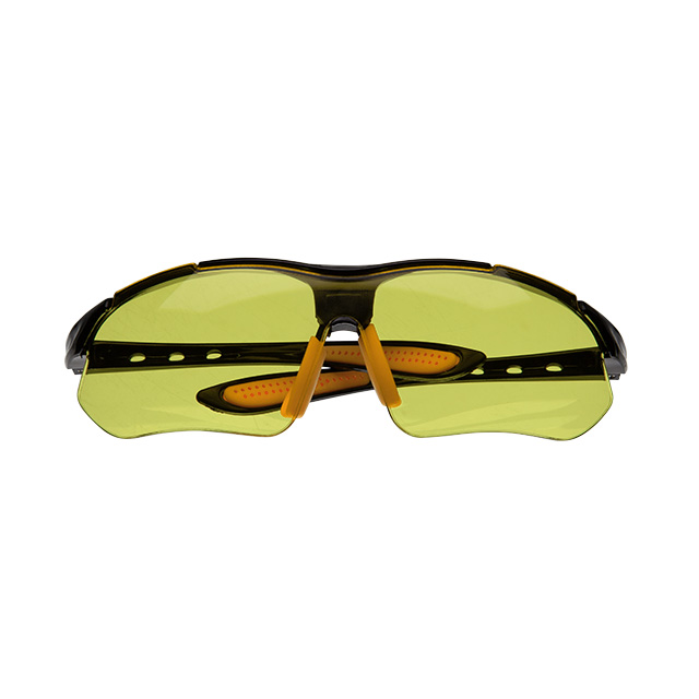 Окуляри захисні, жовті, лінзи полікарбонат, заушники чорні нейлонові, гумова накладка на ніс, захист від удару