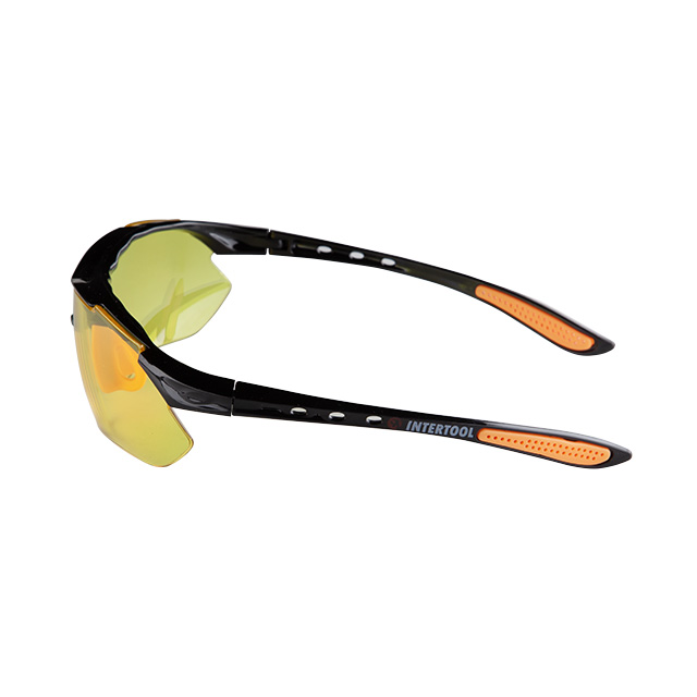 Окуляри повністю виготовлені з міцного полікарбонату і захищають очі від механічних пошкоджень, що актуально під час виконання будівельних, монтажних робіт з різним інструментом, оскільки лінзи витримують удари дрібних твердих частинок. Також окуляри захищають від бризок різноманітних хімічних рідин, крапель, пилу тощо.