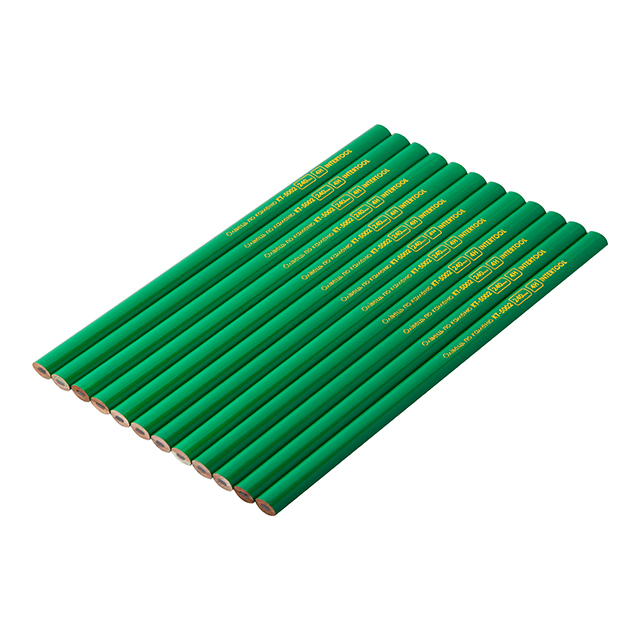 Олівець INTERTOOL KT-5002 для розмітки по каменю та іншій шорсткуватій поверхні, має твердість стрижня 2Н. Плоско-овальний корпус захищає стрижень при ударах і падіннях, надійно фіксується в руці, запобігаючи ковзанню при нанесенні розміток. В упаковці 12 олівців з корпусом зеленого кольору, сірим стрижнем, довжиною 240 мм.