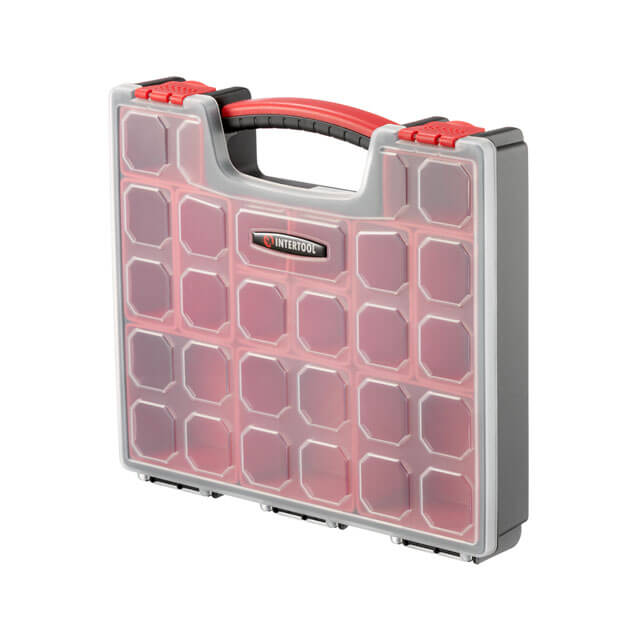В цей органайзер можна покласти інструмент довжиною до 31 см, шириною до 27 см завдяки лоткам, які виймаються.