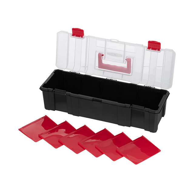 Кришка виготовлена з міцного поліпропілену і стійка до сколів. Прозорість кришки допомагає швидко знаходити необхідні предмети. Органайзер має зручну ручку для транспортування.