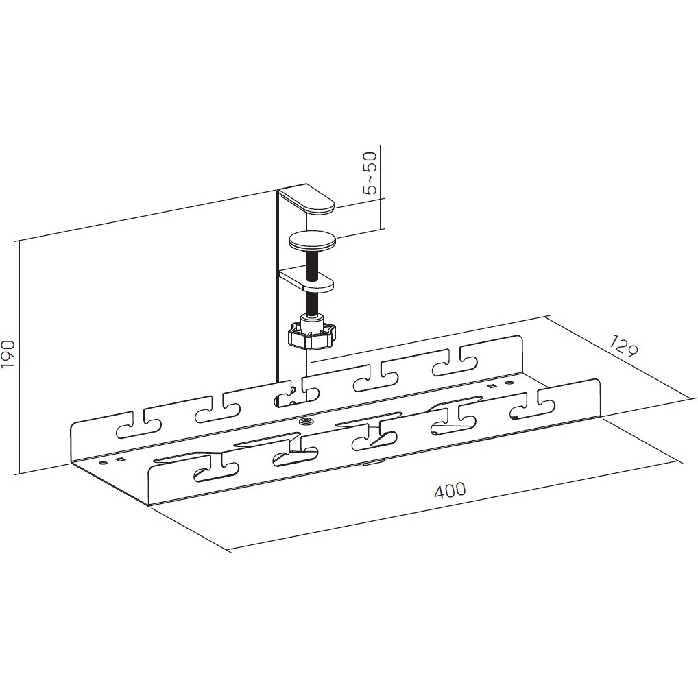 Органайзер забезпечує додатковий простір для зберігання та підходить для різних розмірів столів. Легко встановлюється за допомогою міцних затискачів та може вміщати кабелі, хаби, подовжувачі і адаптери живлення. Ремінці для кріплення кабелів, що входять у комплект, легко впорядковують і закріплюють кабелі, не створюючи безлад на робочому місці.