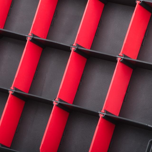 Органайзер виготовлений з міцного, зносостійкого пластику. Чотири замки надійно притискають кришки та не дають пересипатись навіть невеликим деталям з однієї секції до іншої.