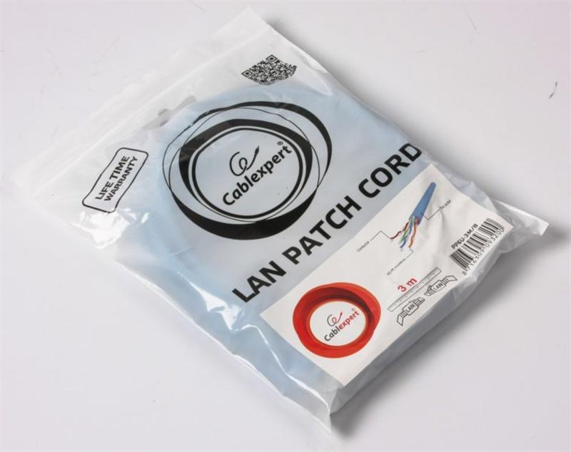 Патч-корд UTP Cablexpert (PP6U-3M/B) cat.6, літий, 50u штекер із засувкою, 3 м, синій