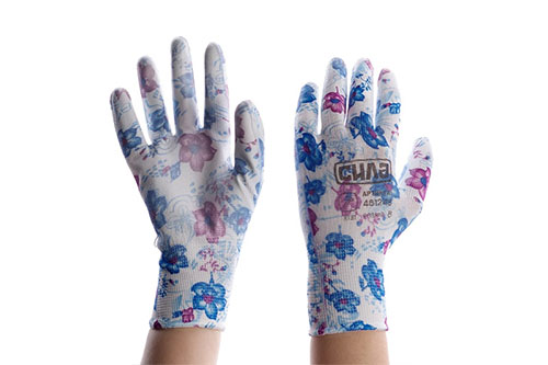 Перчатки с полиуретановым покрытием р8 (голубые садовые манжет) НЕЗАБУДКИ СИЛА