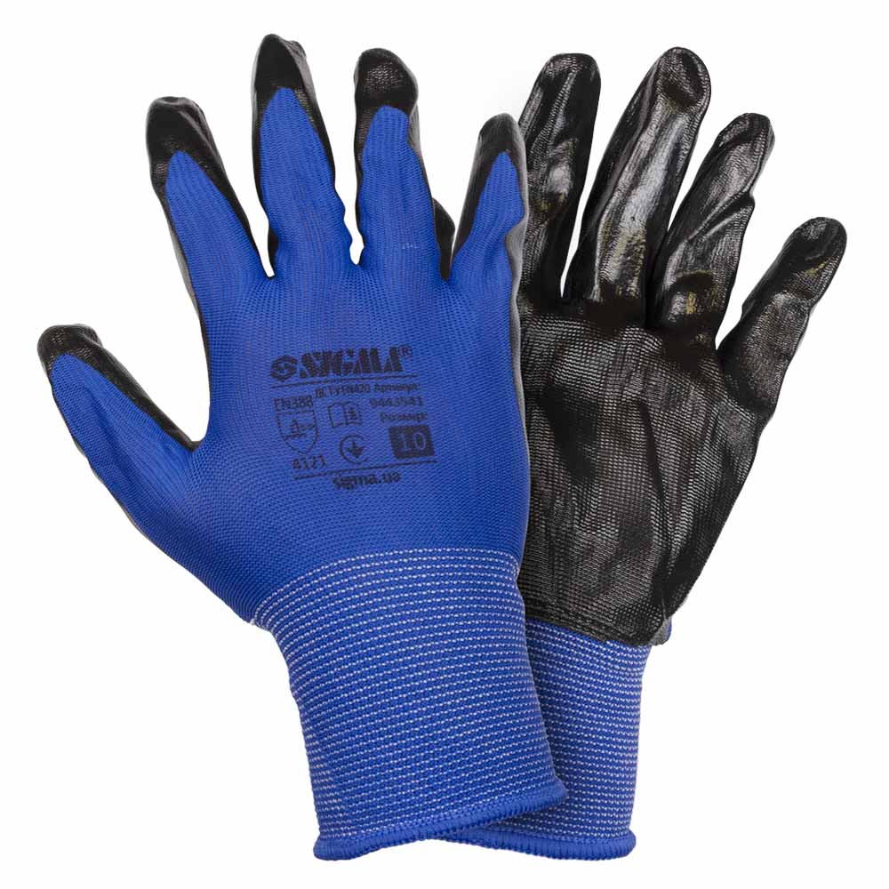 трикотажні з частковим нітриловим покриттям р10 (синьо-чорні манжет) КРАТНО 12 парам SIGMA (9443541)