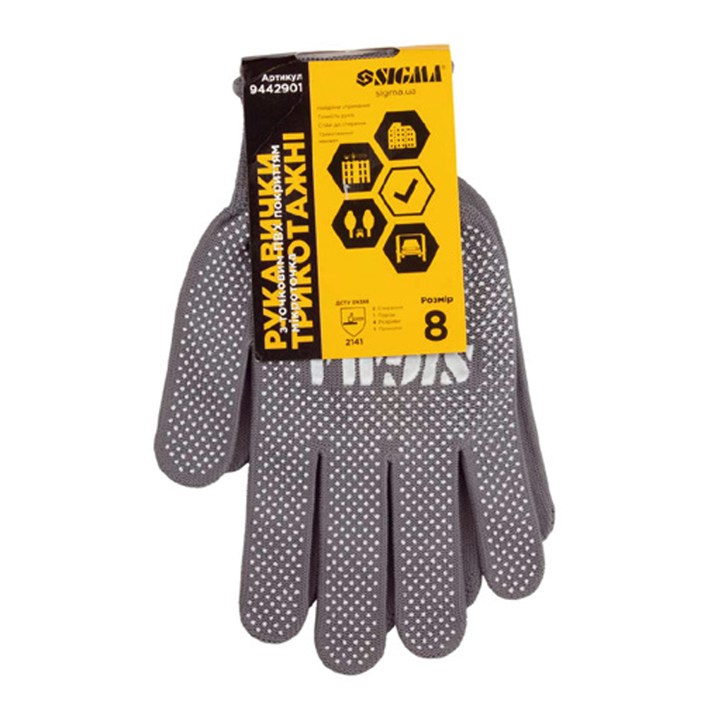 Рукавички трикотажні з точковим ПВХ покриттям р8 Мікроточка (сірі) SIGMA (9442901)