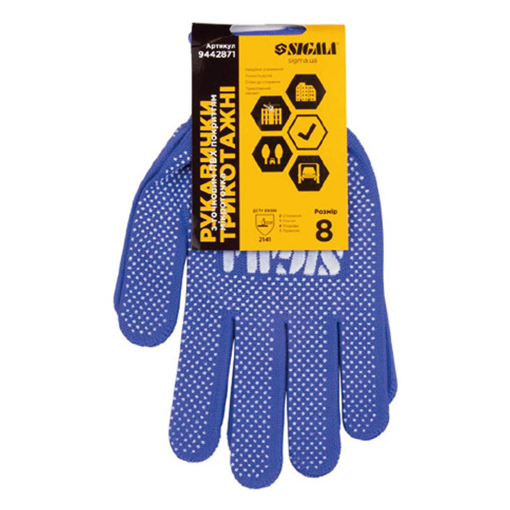 Рукавички трикотажні з точковим ПВХ покриттям р8 Мікроточка (сині) SIGMA (9442871)
