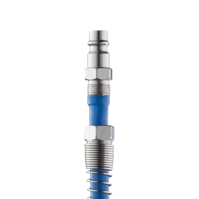 - Пружина відмінно захищає шланг від перелому та залому в місці з'єднання, не знижуючи його рухливості.