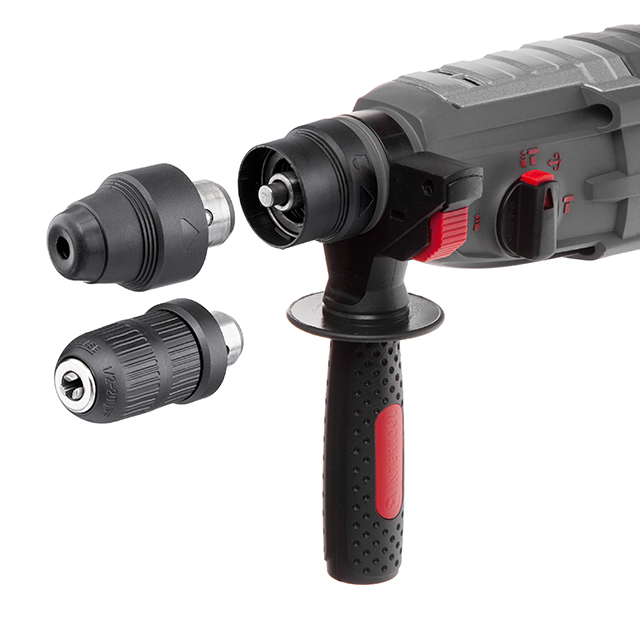 Особливістю даної моделі перфоратора є можливість використання двох типів патронів: