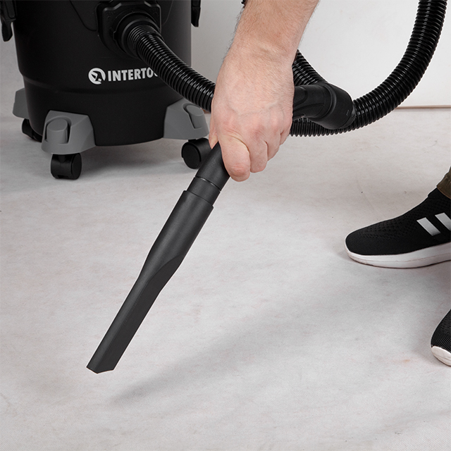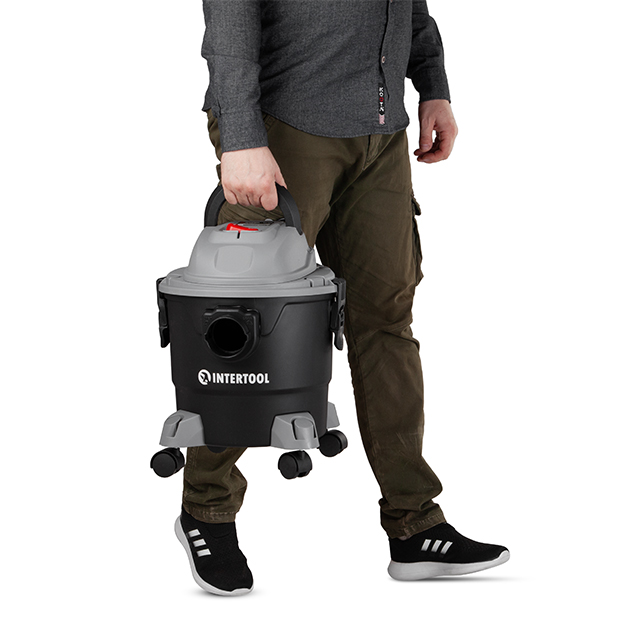 Пилосос працює від звичайної розетки і оснащений двигуном потужністю 1000 Вт. Цього вистачить, щоб без проблем впоратися з будівельним сміттям, адже робоче розрідження становить 17 кПа. Міцний, але легкий, пластиковий корпус робить його зручним для перенесення і використання. Об'єму бака на 15 літрів достатньо, щоб не відволікатися на постійне очищення. Завдяки функції видування пилосос допоможе швидко очистити робочі поверхні, продути інструмент чи прибрати сміття з важкодоступних кутів.