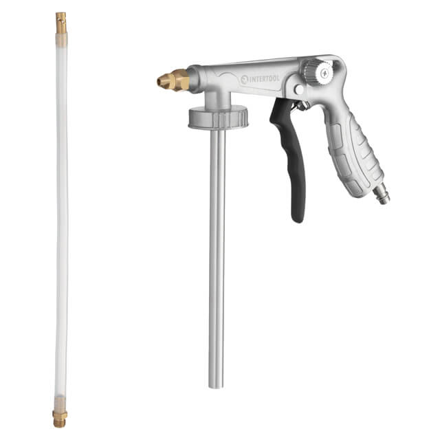 Пневматичний пістолет відмінно підходить для нанесення автомобільних захисних препаратів на кузов, днище та в приховані порожнини. Використовується для рівномірного покриття розчинів загального призначення: антикорів, антигравію та ін. Можна використовувати з матеріалами різної в'язкості на масляній, сольвентній та водній основі, діаметр сопла 5 мм.