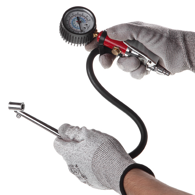Інструмент оснащений манометром для контролю тиску та клапаном скидання повітря, коли необхідно спустити тиск до потрібного показника. Манометр з двома шакалами PSI та bar для зручності зчитування показників.