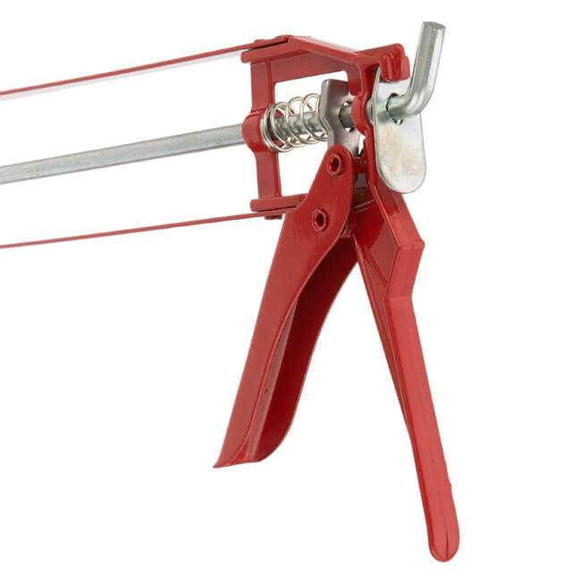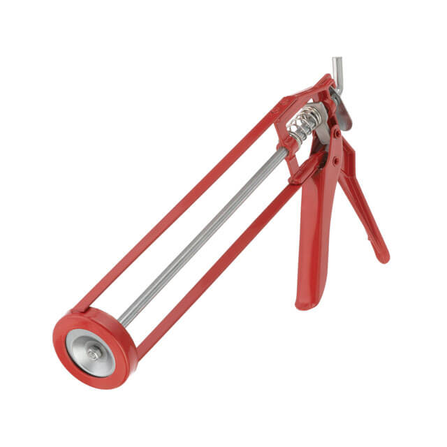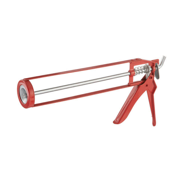 Пістолет з каркасною рамою, виготовлений з металу, міцний та зносостійкий, вкритий захисною фарбою проти корозії. Міцна конструкція металевої ручки та плунжера забезпечує стабільну роботу навіть з великим зусиллям та щільними складами герметиків та клеїв.