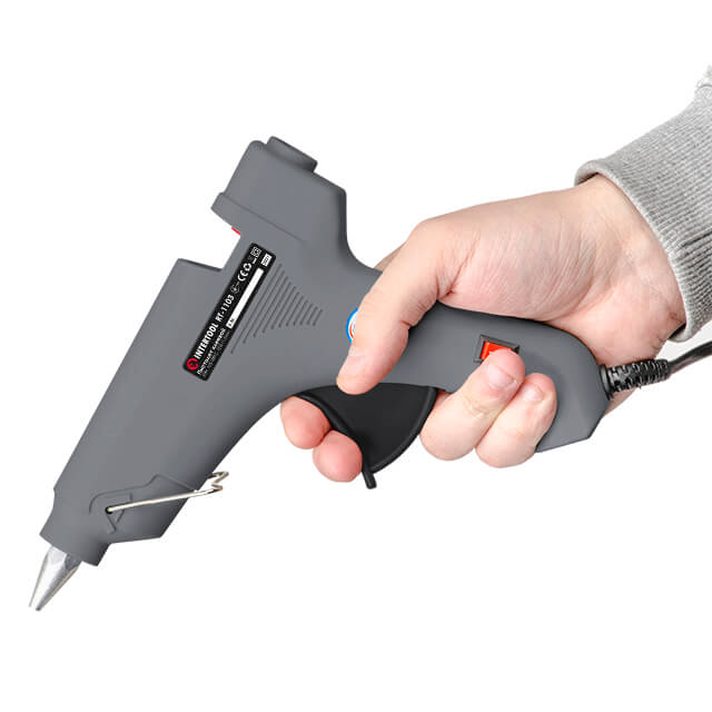Вам не доведеться щоразу відключати термопістолет від електромережі. На корпусі розміщена кнопка вмикання/вимикання, достатньо просто на неї натиснути й надлишки клею не будуть вам дошкуляти під час тривалого процесу склеювання або перерви в роботі.