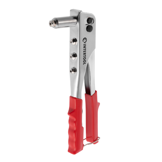 Пістолет заклепувальний ручний INTERTOOL RT-0004 призначений для встановлення алюмінієвих заклепок діаметром 2,4; 3,2; 4; 4,8 мм. Дозволяє скріплювати кілька шарів матеріалу або кілька деталей.