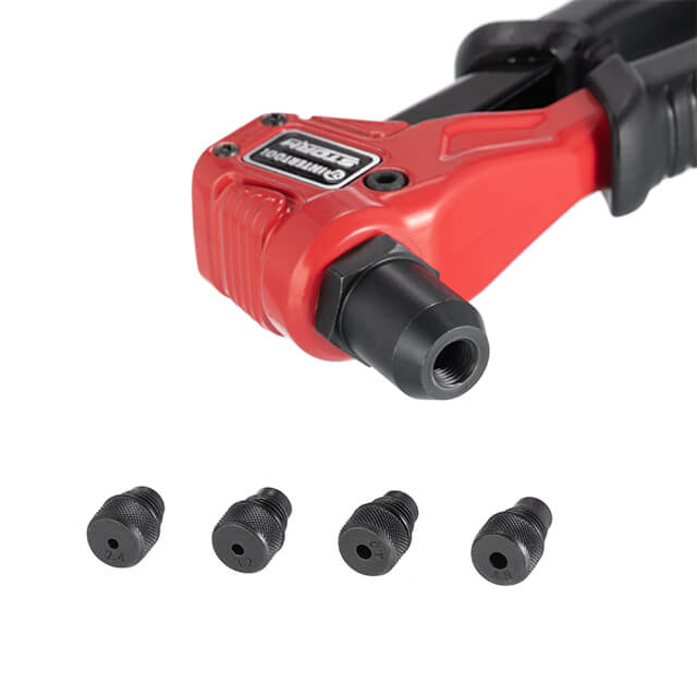 Заклепник має прогумовану ручку ергономічної форми для зручної роботи. Також всі насадки оснащені спеціальними насічками для їхньої швидкої і комфортної заміни в інструменті.