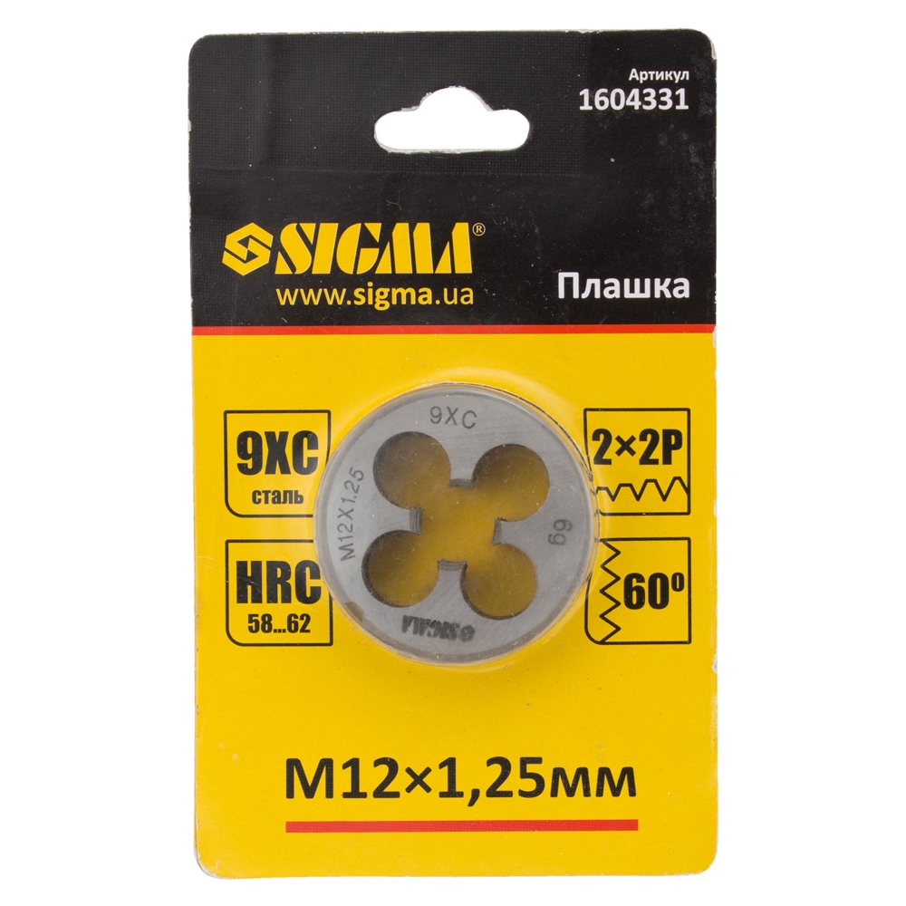 Плашка М12×1,25мм Sigma 1604331 призначена для нарізування або калібрування зовнішніх різьблень. Для роботи закріплюються у тримачах для плашок зі стопорними гвинтами. Для фіксації на зовнішньому циліндрі плашки існують конічні заглиблення та кутовий паз. При нарізанні, різьблення, попередньо змащують консистентним мастилом.
