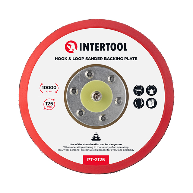 Платформа шліфувальна, діаметром 125 мм - ідеальне рішення для вашої пневматичної ексцентрикової шліфувальної машини, забезпечує високу ефективність та точність роботи. Застосовується для оздоблювальних робіт опуклих та рівних поверхонь, підходить до шліфувальної машини INTERTOOL PT-1006.