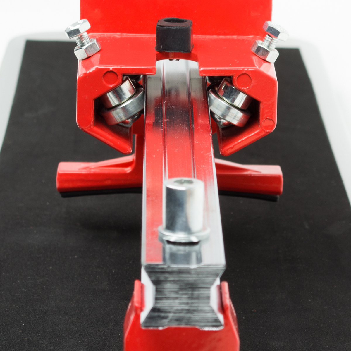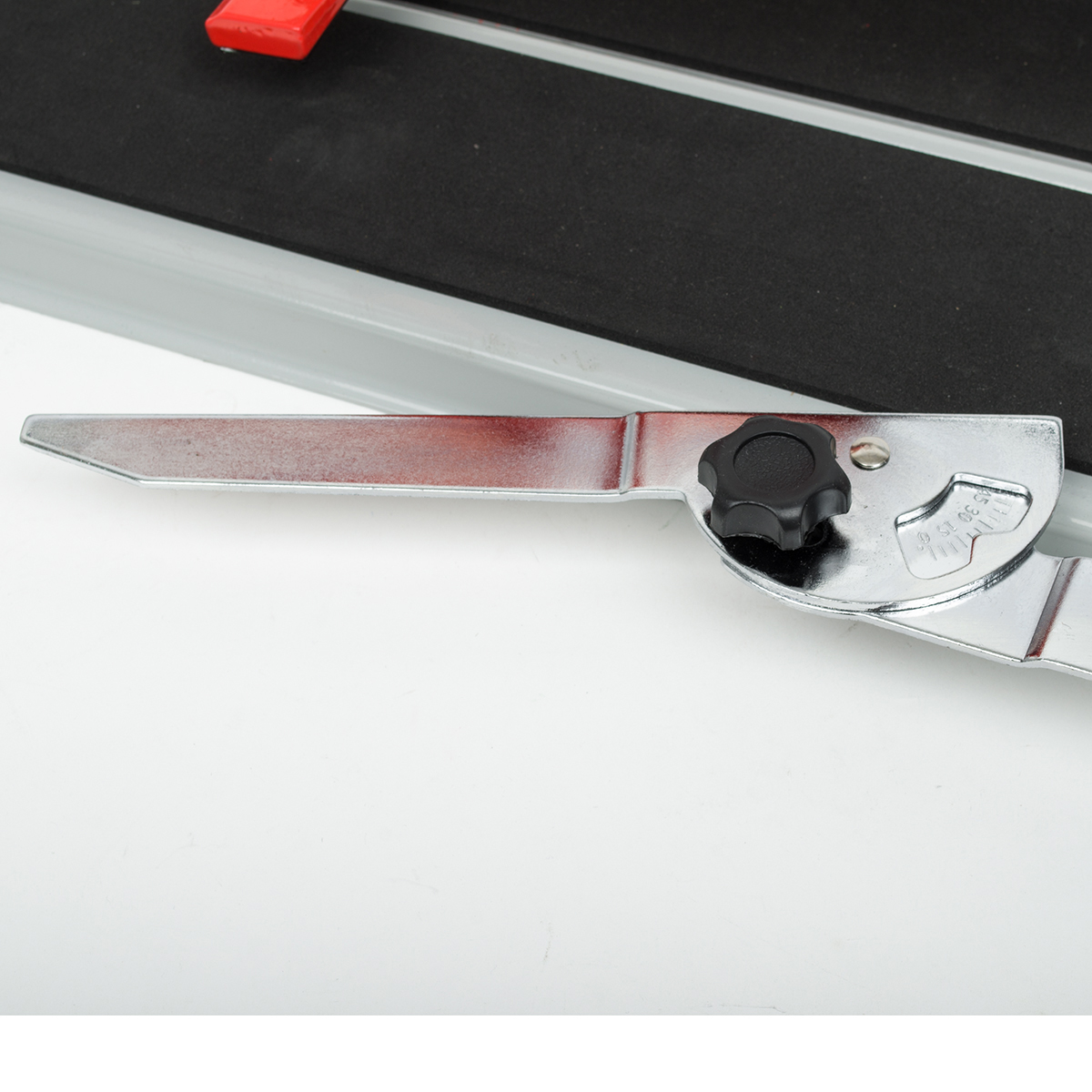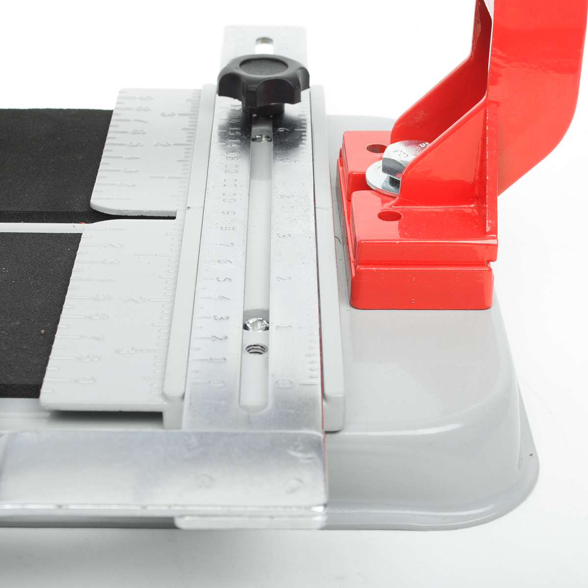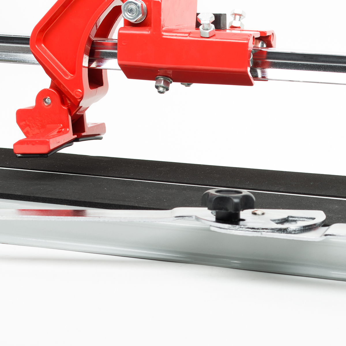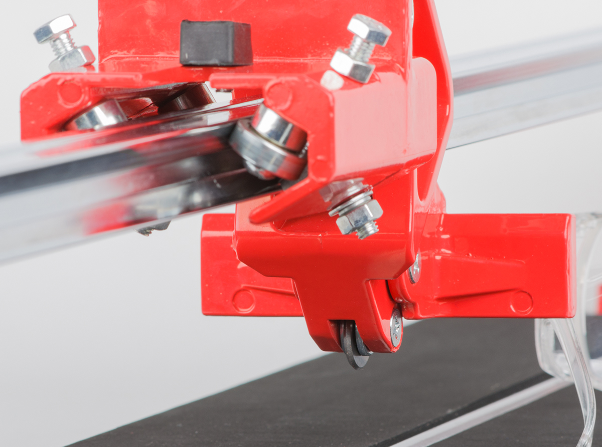Ріже легко та м’яко завдяки підшипниковій системі. Для більш точного та плавного ходу на каретці розміщені регулювальні гвинти, за допомогою них ви можете налаштувати обхват та прибрати люфт. Також плиткоріз обладнаний посиленою платформою, лінійкою та транспортиром.