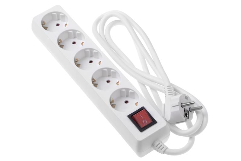 Подовжувач мережевий 2E 1.5м, 5xТипF, 16A, білий