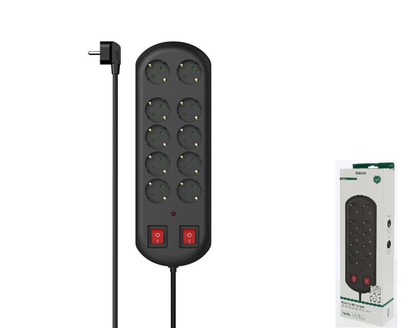 Подовжувач мережевий Hama 2м, 10хТип, 16А, фільтр, чорний