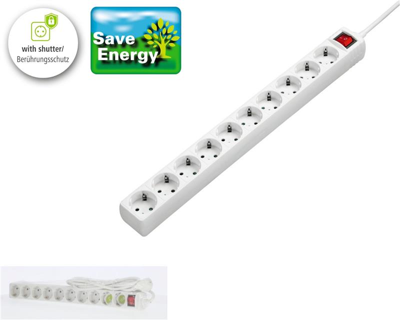 Подовжувач мережевий Hama 3м, 10хТип, 16А, фільтр, білий