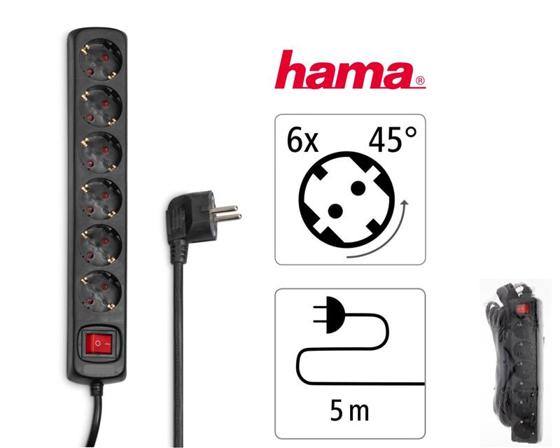 Подовжувач мережевий Hama 5м, 6хТип, 16А, фільтр, чорний