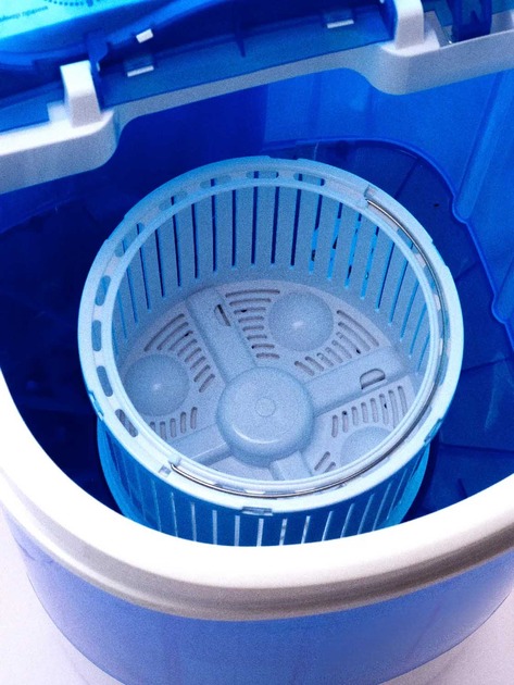 Туристична пральна машина, що ідеально підходить для тривалих поїздок із сім'єю. Легко поміщається в багажнику або ящику. Вона також добре працює в літніх будинках завдяки тихій і ефективній роботі. Вона важить усього 6 кг, але вміщує до 3 кг одягу. Вона має потужність 150 Вт, чого досить для прання одягу, використовуваного під час занять спортом або роботи в саду.