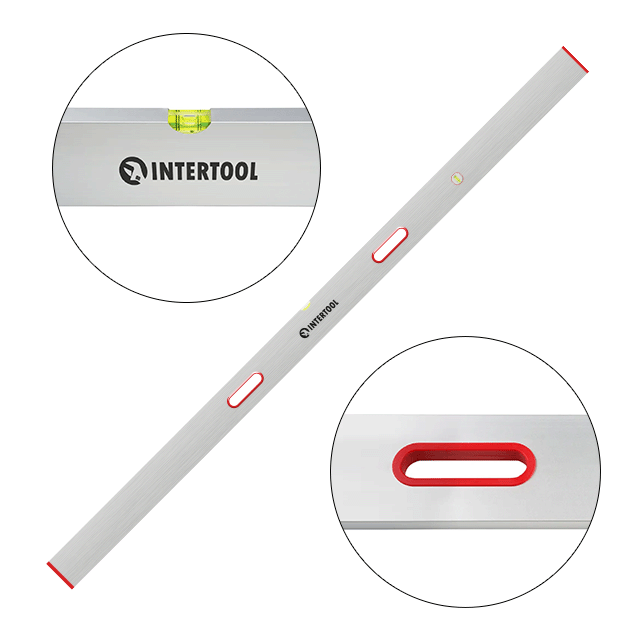 Виготовлене правило з міцного алюмінієвого профілю, дуже легке. Алюміній не боїться вологи, не набухає та не деформується, при цьому має малу вагу. Правило має збільшену міцність та стійкість до зносу, а також не схильне до вигинів корпусу. Два бульбашкові рівні захищені від ударів, з точністю вимірювання 0,5 мм/м.