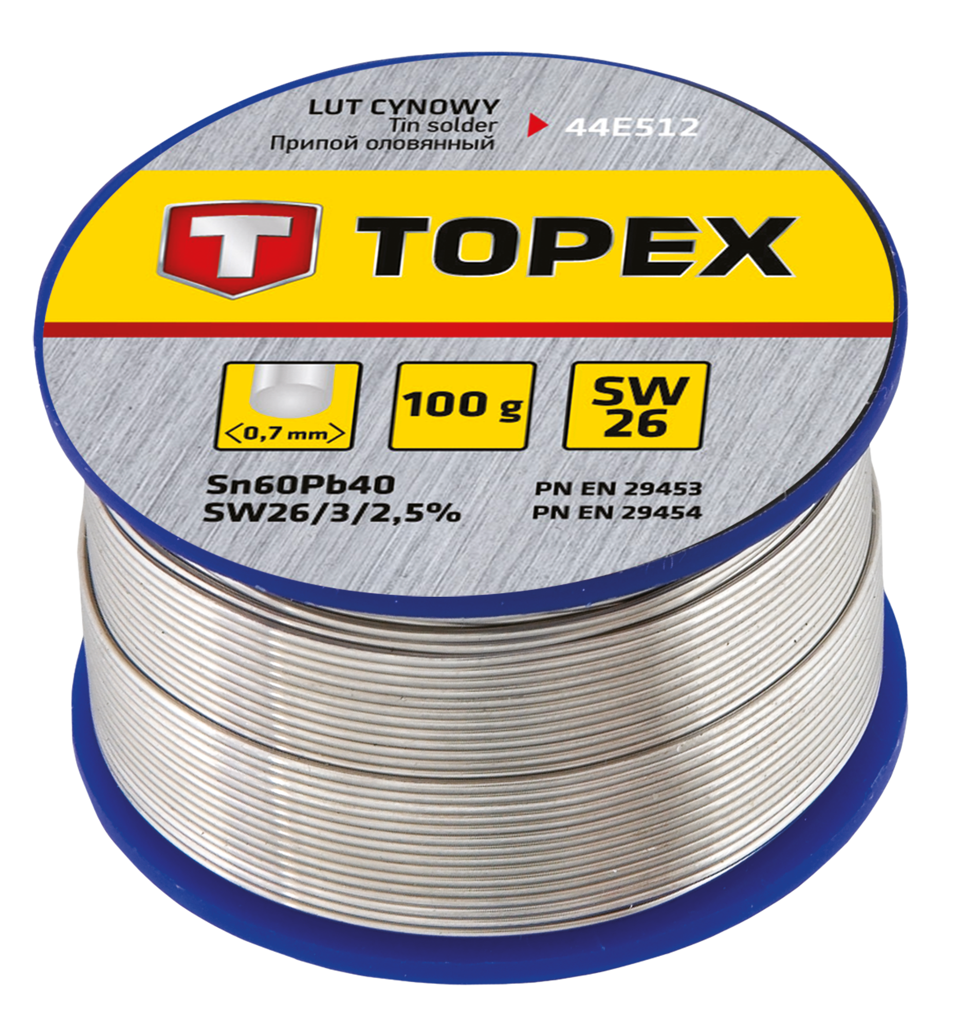 Припій олов'яний TOPEX, Sn60Pb40, флюс SW26, дріт 0.7 мм, 100 г (44E512)