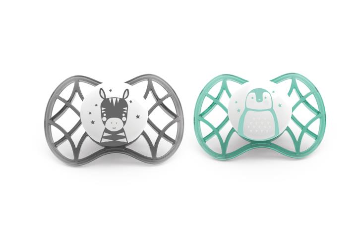 Пустушка Nuvita Air55 Explorer, 0міс+, ортодонтична, 2шт, зебра/пінгвін