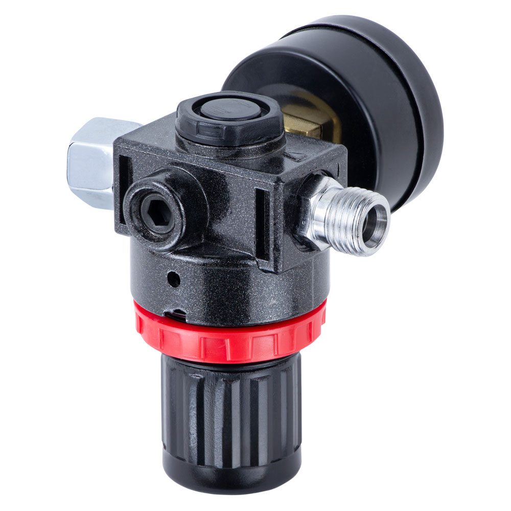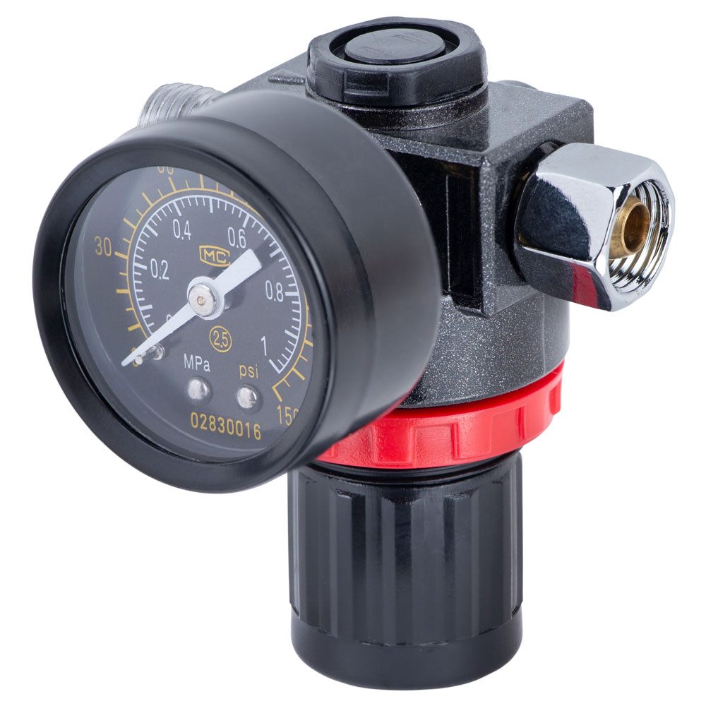 Редуктор з манометром ¼" Sigma (7033011) підтримує постійний робочий тиск повітря. Різкі коливання тиску загрожують зниженням якості покриття при роботі фарбувальним пістолетом. Редуктор вирішує цю проблему, а також забезпечує безпеку роботи користувача. Також для нормальної роботи пневмоінструменту необхідна певна величина тиску дозволяє обмежити високий тиск, оснащений манометром, завдяки якому надається можливість моніторингу рівня тиску в системі.