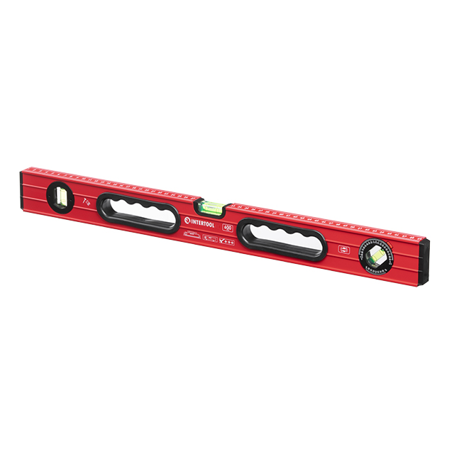 Рівень дуже легкий, не обтяжує руки, ним зручно працювати тривалий час. Зверху рівня нанесена метрична лінійка для зручної роботи. У моделях довжиною від 600 до 2000 мм передбачені два ергономічні отвори для захвату руками, що збільшує комфорт у роботі, особливо у важкодоступних місцях.