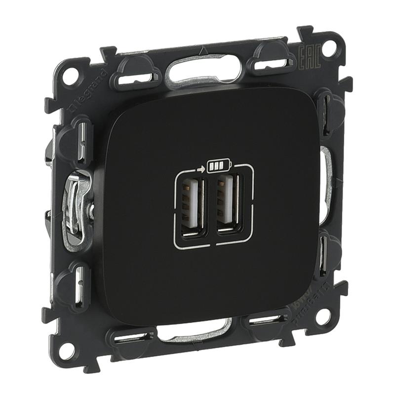 Розетка подвійна USB для зарядки Legrand Valena ALLURE, антрацит