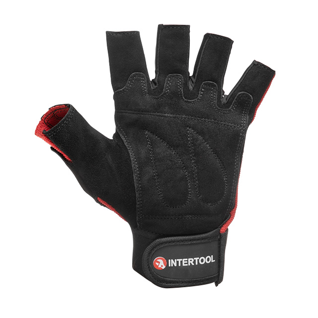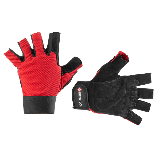 Рукавички без пальців INTERTOOL SP-0144 виготовлені з високоякісної козячої шкіри із захисними вставками на долоні та зі вставками з повітропроникного спандексу на тильній стороні. Ця модель багатоцільова і може використовуватися для виконання монтажних робіт, як водійські рукавички для авто-, мото- або велотехніки. Також знадобляться для різних видів спорту: важкої атлетики, паверліфтингу, бодібілдингу та інших силових тренувань. У воєнний час можуть використовуватися як тактичні рукавички.